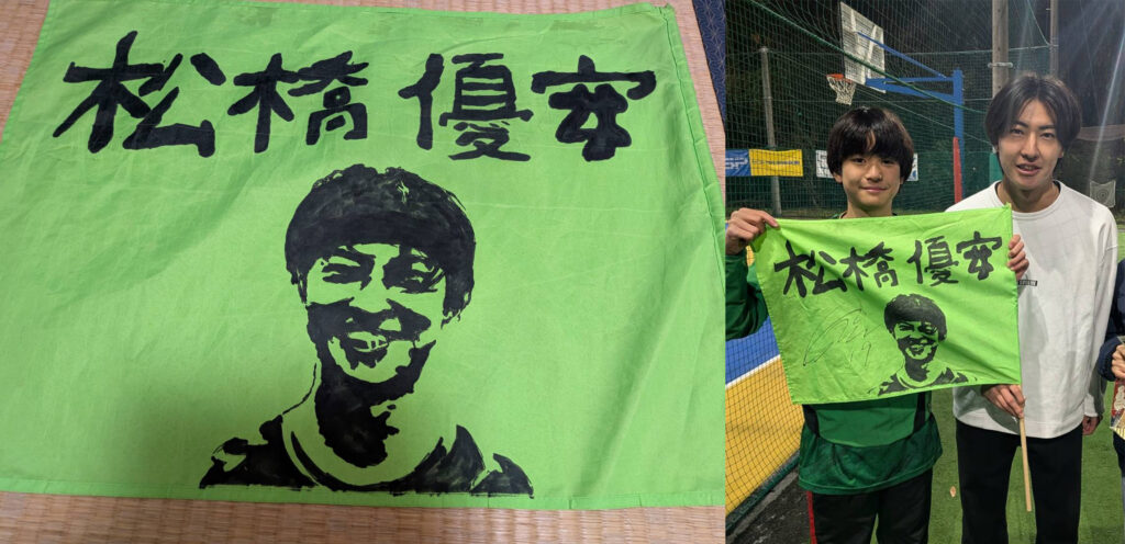 そのあとに偶然自分の通っているサッカースクールに松橋選手が教えに来てくれて驚きました。